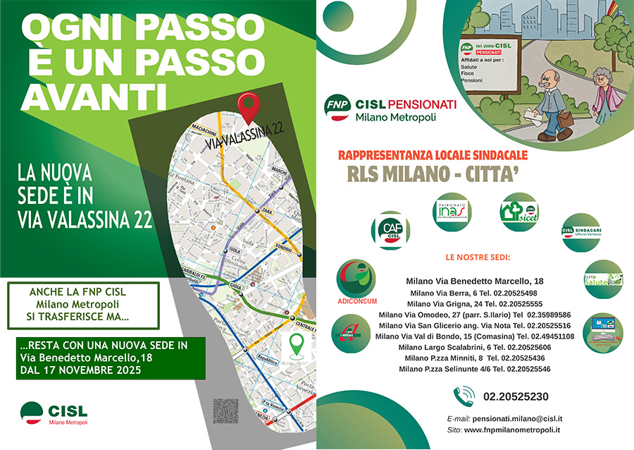 Fnp Cisl Milano avrà una nuova sede in città, in via Benedetto Marcello 18. A partire dal prossimo 17 novembre, presso i locali che vedono già attivi gli sportelli Inas Cisl, si aggiungeranno i nuovi uffici della Federazione dei pensionati. La nuova sede in via Benedetto Marcello si trova a pochi passi dalle fermate metropolitane della linea rossa Lima e Porta Venezia e si raggiunge facilmente, anche a piedi, per tutti coloro che abitano nelle zone vicine alla Stazione centrale e a piazzale Loreto.